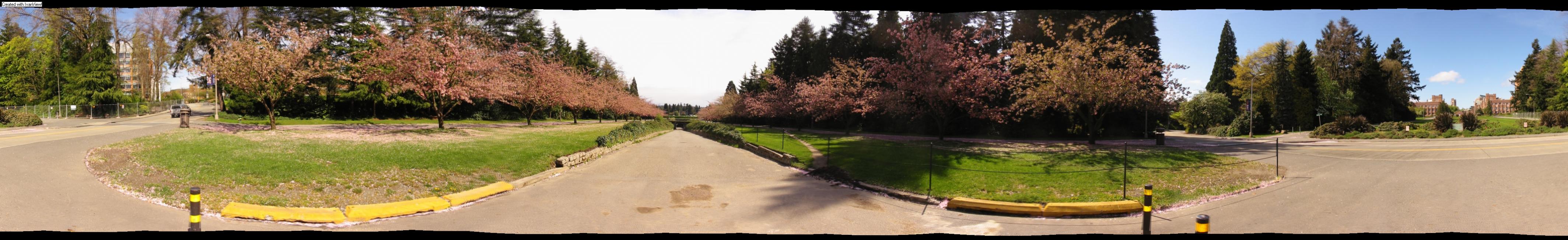 A panorama of a cross street created using Harris feature detector and then blending the images together based on the matching of those features.